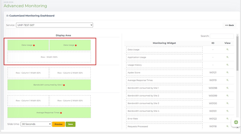 4. You can select a Monitoring Widget from the right side of the screen and drag it to the left in the relevant position of the “Display Area".