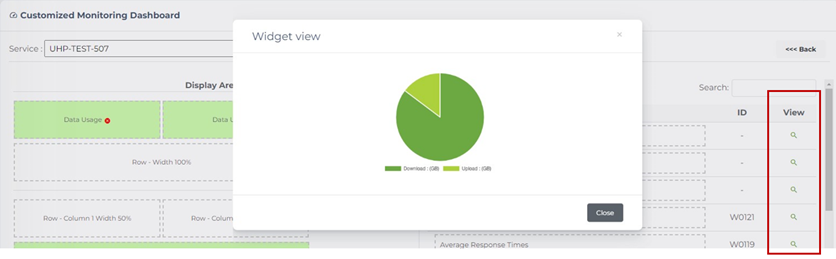 5. You can get assistance in selecting the correct monitoring widgets by selecting the view option on the right of each metric.