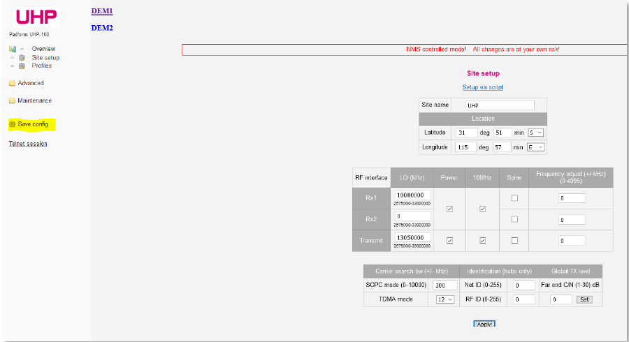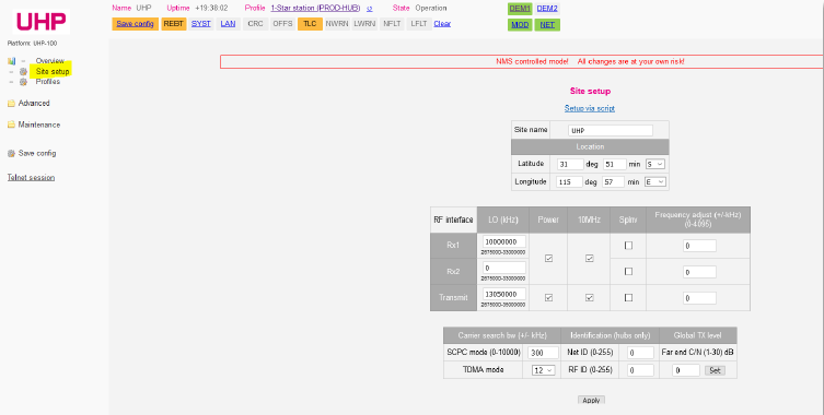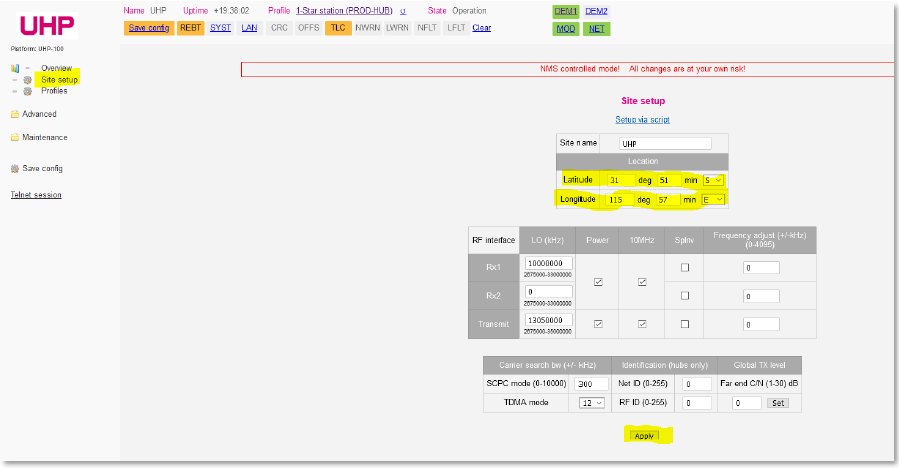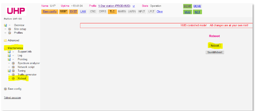 5. Click “Maintenance” and then “Reboot” and finally click the “Reboot” button. Modem will reboot with new LAT/Long.