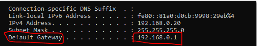 4. Search for the gateway IP address (this is the IP address assigned to the modem)
